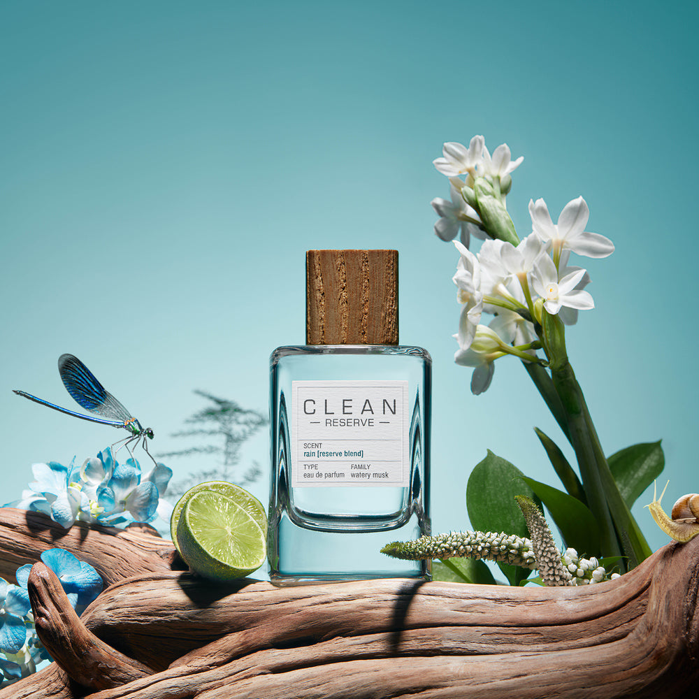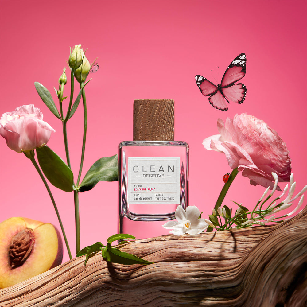 The peachy sweetness of Sparkling Sugar layered over the ozonic freshness of Reserve Rain creates "Sparkling Rain."